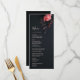 Tarjeta de menú de rosa 3D de albaricoque romántico oscuro con nombre de novia y novio y fecha de la boda en el reverso.