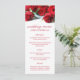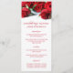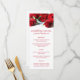 Hermoso y elegante menú de bodas con dos fuentes diferentes en rojo con románticas rosas rojas.