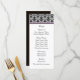 Esta elegante tarjeta de menú incluye damasco negro vintage sobre un fondo gris plateado como borde superior. El damasco está separado de la parte informativa de la carta por unos delgados bordes negros y rosa pastel. El menú está impreso en negro sobre fondo blanco. El dorso de la carta es negro dramático. Esta tarjeta de menú coincide con las invitaciones de matrimonio en monograma negro Damask rosado y otros productos de boda en nuestra tienda. También se puede utilizar para cualquier evento formal o fiesta de cena en cualquier temporada. Si necesita alinear el texto después de realizar cambios, utilice Personalizar It y los indicadores de flecha. Siéntase libre de usar el contacto de la tienda si necesita ayuda; siempre estamos encantados de ayudarle.