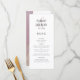Un bonito rosa polvoriento pastel procedente del extremo pastel de la paleta de colores Viva Magenta. Edite fácilmente los nombres de la novia y del novio, la fecha del boda y los elementos de menú. Si el tamaño de la fuente o los márgenes necesitan un ajuste, introduzca la herramienta de diseño y realice ajustes en el cuadro de límite de texto o en el tamaño de la fuente para que se adapte mejor a su diseño. Si necesita ayuda, estamos encantados de ayudarla. No dude en enviarnos un mensaje usando el Chat Zazzle. Por favor, espere 24 horas para una respuesta ya que estamos en Australia. Moda Menú Boda rosado agitado .