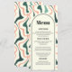 El "Retro Swirl Arch Mint Green Pink Boda Menu" presenta una mezcla de buen gusto de estilo vintage y sofisticación de moda. Esta carta de menú presenta unos caprichosos movimientos en verde menta y rosa, creando una arcada que resalta las propuestas culinarias del evento. La disposición contemporánea se ve compensada por el juego del diseño retro, que ofrece un marco para una experiencia gastronómica a la vez elegante y acogedora. Perfecto para las parejas que buscan añadir un toque de color y nostalgia a la mesa, este menú es un regalo visual que promete un viaje gastronómico inolvidable.