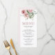 Elegante menú de boda rosa y rosa con hermosas flores.