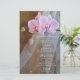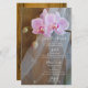 Personalizar el informal pero elegante menú Rústico Elegance Barn Boda con los detalles de la comida que se servirán en el almuerzo de la ducha nupcial tema del rancho, la cena de la recepción matrimonial o el brunch post boda añadiendo la ensalada o primer curso, segundo y postre o tercer curso. Esta encantadora carta nupcial personalizado se caracteriza por una pintoresca fotografía floral de flores rosadas de falaenopsis orquídea en el tallo con madera de granero marrón y velo de novia blanco.
