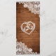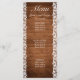 Menú de boda. Estilo rústico con un fondo de madera y decoración de encaje blanco. Hay más artículos disponibles en este estilo en nuestra tienda. Puede editar el diseño más adelante, cambiar colores, fuentes y añadir texto extra haciendo clic en el enlace "personalizar más adelante".