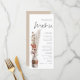 Menú Rústico Boho Pampas Grasses Boda. Grasas de color ocre en un jarrón de estilo rústico decoran la esquina inferior izquierda, con un guión elegante para el Menú y fácil de personalizar el resto del texto a sus necesidades.