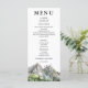 Presenta un toque de elegancia natural en la recepción de tu boda con nuestro menú rústico de Bodas de Pinos de la Montaña de los bosques de bosques de bosque de bosques. La carta está muy bien diseñada, con tonos tierra y ilustraciones de pino exuberantes, que evocan el ambiente sereno de un refugio de bosques.