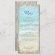 La carta de este rústico restaurante de bodas en la playa ofrece una escena de playa con olas del océano azul acuático estrellándose en la orilla, enmarcada con madera rústica templada, con luces de cuerda encima. Proporcione a sus invitados la opción de menú cambiando el texto fácilmente con las plantillas.