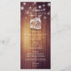 Plantillas de tarjetas para rack de menú boda - Elegante Jar de mason y luces de cadena sobre fondo de madera rústica. Un diseño perfecto para tu gran día. ¡Todo el estilo de texto, colores, tamaños se pueden modificar para adaptarlo a sus necesidades!