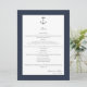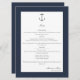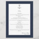 Menú Boda simple de ancla náutica | Azul Marino
