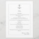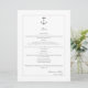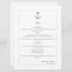 Añada un toque de sofisticación costera a su celebración con este sencillo menú de Boda de ancla náutica, con un motivo de ancla clásico y un elegante diseño costero. Perfecto para recepciones a orillas de la playa o con temática marítima, este menú muestra las opciones de recepción en un diseño limpio y sencillo. El guión elegante y la tipografía moderna resaltan cada curso con gusto, complementando el estilo general de su temática boda costera. Un detalle elegante que mejora el ambiente de la mesa y guía a los huéspedes a través de su cuidada experiencia culinaria.