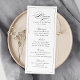 Esta elegante carta de menú presenta un guión clásico y un marco delgado en blanco y negro, sencillo y elegante, ideal para bodas clásicos, bodas vintage, boda formal y otros eventos de celebración. Ver todas las piezas coincidentes de la colección