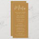 Menú simple boda con "Menú" mostrado en un guión blanco con fondo ocre. Personalice el menú boda ocre agregando nombres, fecha boda e información de menú. Diseñado para coordinar con nuestra colección de bodas de script simple.