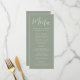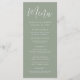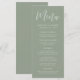Menú de boda simple con "Menú" mostrado en una escritura blanca sobre un fondo verde salvia. Personalice el menú de boda verde salvia agregando sus nombres, fecha de boda e información del menú. Diseñado para coordinar con nuestra colección de boda Simple Script.