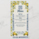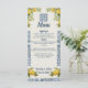 Mi estampado de azulejos azules de inspiración italiana-mediterránea, emparejado con alegres limones de color amarillo-verde agua pintados a mano, crea una fresca y moderna carta de platos bodas que seguro impresionará. Presenta una forma moderna y un guión elegante de pincel. Impresiona a tus huéspedes con este diseño de moda y único que hará que todo el mundo hable.