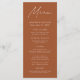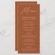 Eleva la recepción de tu boda con nuestro delicioso menú boda, con un elegante guión blanco escrito a mano sobre un fondo de terracota. Perfecto para las parejas que buscan un aspecto sencillo pero sofisticado, este diseño moderno le permite personalizar con sus nombres, fechas bodas y ofertas de menú. Su estilo minimalista complementa sin esfuerzo cualquier tema boda, añadiendo un toque de elegancia a su día especial. Da una impresión duradera a sus huéspedes con un menú que refleja la sencillez de moda de su visión boda.