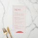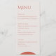 Este hermoso menú es perfecto para su próximo boda. El diseño moderno y depurado está a la espera de los toques finales de su deliciosa carta. Este diseño se integra perfectamente en la colección de Bodas modernos Terracotta Leaves, no deje de comprobarlo por invitaciones, listas de asientos y más.