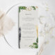 Esta invitación tiene hojas tropicales de acuarela verde y follaje de oro simulado. La copia es editable y se puede cambiar el tipo de letra. La parte posterior tiene un patrón de coincidencia. ¡Ideal para bodas de verano y de playa!