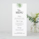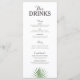 La carta de platos en la parte delantera y la carta de bebidas en la parte trasera. Perfecto para el boda tropical o para cualquiera que busque una estética minimalista moderna con un toque de verde.
