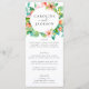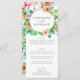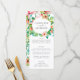 Este exuberante menú boda tropical ofrece bonitas flores de color acuático y hojas tropicales. El diseño tropical floral incluye flores de hibisco, flores de plumería y hojas tropicales que rodean los nombres de la pareja feliz. A continuación, personalizar la plantilla con los detalles del menú del evento. En la parte trasera del menú boda se ha optado por un magnífico patrón floral tropical. En nuestra colección de bodas Tropical Floral encontrará artículos de papelería boda coincidentes.