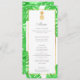 Tarjetas de menú Tropical Pineapple, parte de nuestra colección de papelería tropical de boda de piña. Presenta una acuarela verde vívida, hojas tropicales en el fondo con acentos de Relieve metalizado de oro falsos. Utilice la herramienta "personalizar" / "personalizar" para ajustar el tamaño y la ubicación del texto.