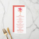 Estas tarjetas de menú son perfectas para cualquier pareja que planee una romántica celebración de bodas en la playa. El diseño se compone de una palmera acuática tropical en tonos cálidos de color rosa coral, rojo y naranja sobre un fondo blanco limpio con una redacción editable en color. El diseño sencillo puede ser personalizado para su evento especial y será el menú perfecto para cualquier fiesta tropical con temática, incluyendo duchas de novias, compromisos, duchas de bodas, fiestas de cumpleaños y mucho, mucho más.