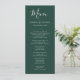 Aumente su celebración boda con nuestro elegante menú Boda verde esmeralda y blanco, diseñado para impresionar a sus huéspedes con su encanto atemporal y sofisticación moderna. En este menú, muy bien elaborado, se respira un rico fondo verde esmeralda, que simboliza el amor, el crecimiento y la prosperidad, y se complementa con acentos blancos crujientes que añaden un toque de pureza y elegancia. Perfecto para cualquier temática boda, la carta muestra un refinado estilo tipográfico que asegura que los platos se destaquen con cuidado. Tanto si se trata de un gran salón de baile como de una ceremonia íntima en el jardín, este elegante menú combina a la perfección con su decoración, lo que hace que su entorno sea muy agradable.