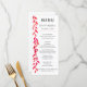 Las elegantes hojas pintadas en tonos rosa a rojo y naranja resaltan los detalles del menú de bodas con letras de moda. COINCIDIENDO con los artículos de nuestra tienda.