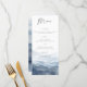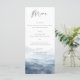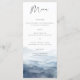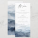 Esta tarjeta de menú de boda presenta un paisaje montañoso de acuarela en azul polvoriento. Diseñado para bodas de destino en la montaña, ceremonias en parques nacionales y celebraciones al aire libre rústicas, el estilo se centra en un tema natural escénico y orgánico.