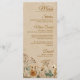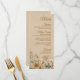 Presente su festín boda con elegancia rústica utilizando nuestras tarjetas de boda de inspiración bohemia. Con un delicado patrón de acuarela de flores silvestres, hojas y vegetación botánica en una cálida paleta de beige, naranja quemado y verde, estos menús capturan la esencia de la moda de una granja. El guión elegante y la tipografía al estilo caligráfico añaden un toque de sofisticación vintage, complementando perfectamente su celebración de primavera, verano o otoño. Cada tarjeta está enmarcada con un borde sutil, creando una elegante presentación floral que se coordina con el tema boda general.