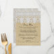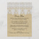 NOTA: se trata de un diseño impreso plano, no hay elementos de encaje, tela o capas en este producto. COLOR PALETTE: COLECCIÓN DE DISEÑO blanco, tostado, burlap: Recepción coincidente o Menú de cena de ducha nupcial con opciones gratuitas. Este es un moderno estilo BOHO o bohemio, de inspiración gitana, de moda moderna y elegante. Tiene una belleza simple, limpia y encantadora. Creado a partir del vintage patrón de encaje de hojas de gota profunda barroco de época victoriana o eduardiana y ornamentos de diseño de gota de lágrimas que han sido transformados gráficamente a mano en un elegante y sofisticado borde de guarnecido de encaje. Los cordones están colocados encima de un patrón de fondo texturado de arpillera teñida de té. Hay un juego completo de invitados para la boda. El lado inverso tiene la gota de la lágrima, el patrón de encaje de los giros en un patrón de repetición total.