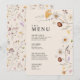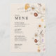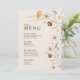 Las tarjetas de menú de boda se caracterizan por el estilo boho, la obra de arte floral y los colores beige, con una mezcla de diferentes estilos de fuente, a menudo en diferentes tamaños, para crear un aspecto único y ecléctico que hace que la estética natural de este menú.