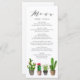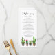 Agregue un acento boho a su tablescape con esta tarjeta de menú de personalizable. Cuenta con suculentos y cactus en macetas de acuarela. Personalice agregando sus detalles. Esta carta de cactus es perfecta para bodas de verano, duchas de novias, duchas para bebés, fiestas de cumpleaños y otros eventos.