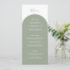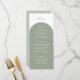 Presenta tu cena de recepción con esta elegante tarjeta de menú bohemio, diseñada para coordinar con la colección de bodas Sage Green Rustic Arch, ofreciendo un giro fresco en la apariencia característica. La parte frontal presenta una simple curva de arco verde claro que enmarca elegantemente los detalles de tu comida, incluyendo aperitivos, selecciones de plato principal y postres, todo sobre un fondo blanco marfil. Diseño retro. Esta sutil variación crea un fondo natural rico que permite que la información de tu menú tome el centro del escenario.