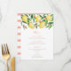 Limones acuarelas con hojas de color verde brillante y carta de menú de flores rosadas para coincidir con mis invitaciones y papelería en el mismo rango.