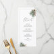 Mínimo rústico Navidad de follaje de invierno carta de cena con acuarela floral de hojas de pino, bayas rojas y vegetación eucalipto. Con caligrafía elegante de escritura a mano.