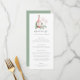 Diseñado para coincidir con nuestras invitaciones para degustación de vinos Brindis por el amor para despedidas de soltera, cenas de ensayo y fiestas de compromiso, los menús presentan una botella de vino rosado inscrito con las iniciales de la pareja en un lecho de suave follaje de acuarela verde salvia. Personalice con los detalles del menú de su evento en letra clásica gris.