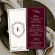 Menú Burgundy Ivory Monogram Crest Old Money Wedding