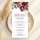 Elegant burgundy floral theme wedding menu featuring beautiful flowers.