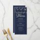 Presentamos nuestro cautivador menú boda rústico con luces de cuerda brillantes contra un oscuro fondo de madera marina. Perfecto para esa rústica celebración temática del granero. Personalizar con facilidad