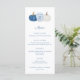Diseño de tarjeta de menú de Jarrón Clásico de Jengibre con Calabazas Azules y Blancas para combinar con mis invitaciones y papelería en la misma gama. Elementos de acuarela pintados a mano por mí antes de ser escaneados en forma digital. Tenga en cuenta que puede cambiar el color de contraste en el reverso (actualmente un azul oscuro) cambiando el color de fondo en el reverso (debajo de las casillas de personalización de texto, haga clic o pulse para personalizar más y entrar en la herramienta de diseño).