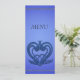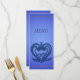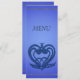 carta de menú para la cena, con postres a la carta para la cena, nombres de comidas... para bodas y todas las demás reuniones, ceremonias... diseñado con un estilo floral giratorio azul.