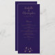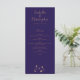Sofisticado y moderno diseño floral metálico de cobre en el menú boda de fondo azul medianoche.