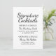 Permita que sus invitados sepan qué bebidas les esperan con este elegante cartel de "Cócteles de firma" que presenta una hermosa combinación de letra cursiva y tipografía serif clásica. El diseño limpio en blanco y negro enumera la elección de la novia y la elección del novio con nombres de bebidas e ingredientes, lo que facilita a los invitados encontrar su bebida perfecta. Una adición elegante a cualquier barra de bodas o configuración de hora del cóctel. Todo el texto es totalmente personalizable.