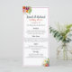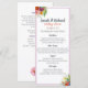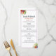 Celebre su día especial con este encantador menú de cena de bodas de flores silvestres de color agua. Con sus vibrantes flores de jardín primaveral y su suave salpicadura de acuarela en la parte inferior, esta elegante disposición vertical muestra con gusto sus aperitivos, platos principales, postres y bebidas. Perfecto para bodas al aire libre, viñedos, jardines o rústicos, el diseño de este menú combina a la perfección con nuestras invitaciones caseras, tarjetas RSVP, carteles y otros artículos de papelería. Personalice los detalles de su menú y la fecha del boda para añadir un toque elegante y coherente a las mesas de recepción. Ideal para cenas, recepciones de cócteles y celebraciones tipo bufé. ¡Un toque atemporal que apreciarán los clientes!