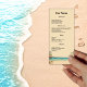 El menú de la cena Boda con temática Dream Beach es lo que necesitas para un elegante destino tropical de verano Bodas. Tiene un diseño acuático costero con tipografía moderna. Deja que tus invitados sueñen con un viaje al océano. Contenido generativo