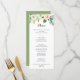 Esta sencilla carta de menú vegetal para cenar es perfecta para un boda tropical. El diseño presenta rosas pintados a mano, blancos, rosados y ondulados, incrustados en un follaje verde, que inspiran la belleza artística. Este menú se puede utilizar para la recepción de bodas, la cena de ensayo, la ducha de novia o cualquier otro evento.