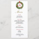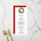 Haga especial la cena de sus Navidades con este menú de cena personalizado, con una elegante corona de color de agua pintada a mano con cinta roja y cardenales con la palabra "JOY" escrita en el medio.