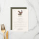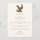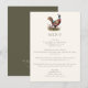 Tarjeta de menú de cena con tema de caza con ilustración de faisán y tipografía elegante, respaldo verde oliva oscuro y texto personalizado. Perfecto para una cena campestre, cena de ensayo de boda elegante, cena de caza, fiesta de retiro de caza o celebración de cumpleaños de caza.