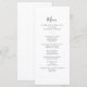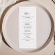 Esta sencilla carta de menú para la cena es perfecta para un boda moderno. El diseño, sencillo y elegante, presenta una tipografía de escritura clásica y elegante en blanco y negro. Este menú se puede utilizar para la recepción de bodas, la cena de ensayo, la ducha de novia o cualquier otro evento.