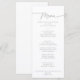 Esta tarjeta de menú de cena minimalista simple gris silenciado es perfecta para una boda rústica. El diseño simple y elegante cuenta con tipografía de guión clásica y elegante en gris y blanco.
